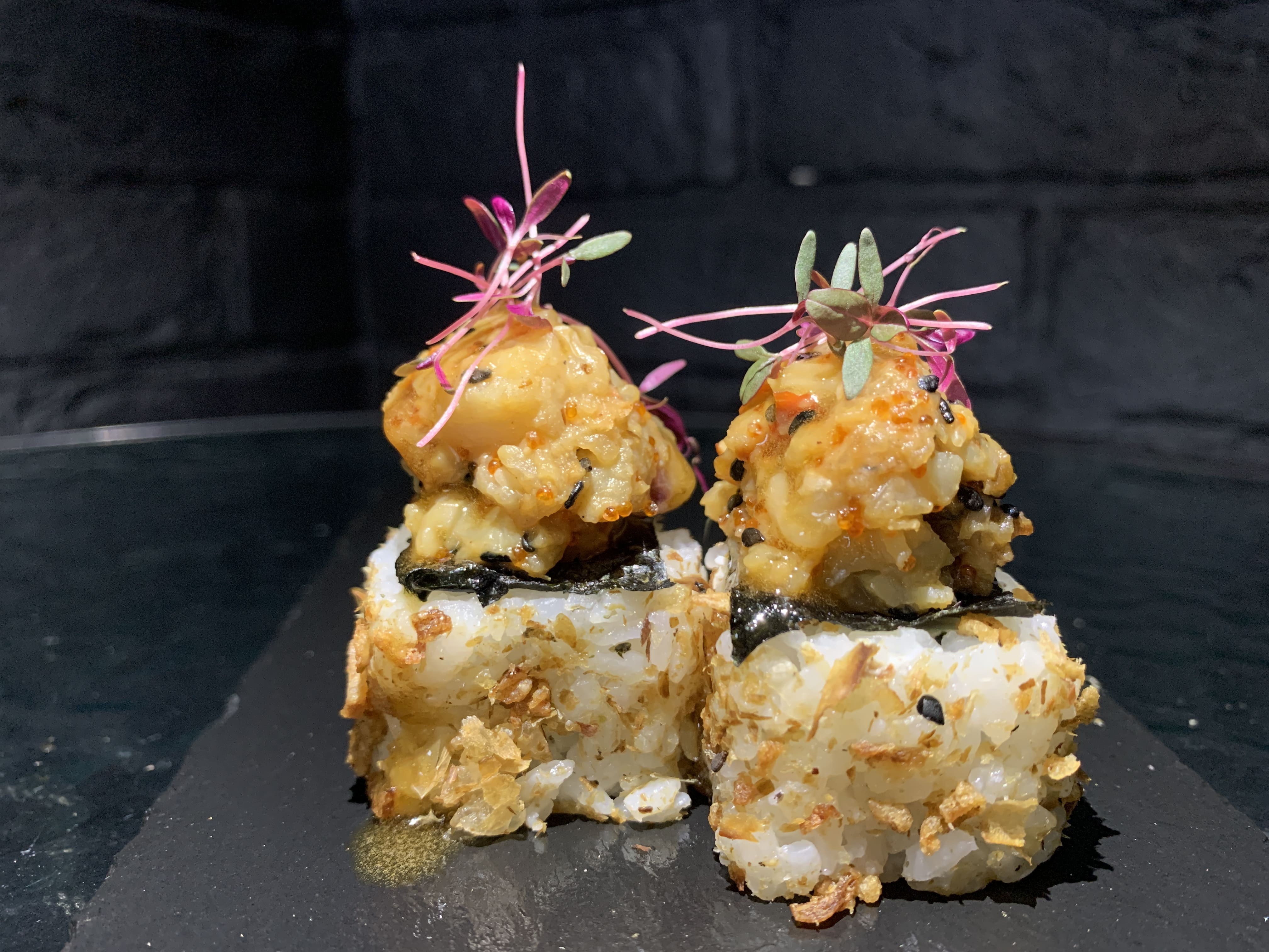 Жареный тунец Yellowfin в трюфельном соусе от Бренд- Шефа, сливочный крем-сыр, стружка тунца (БОНИТО), японские специи ФУРИКАКЭ (Furikake)